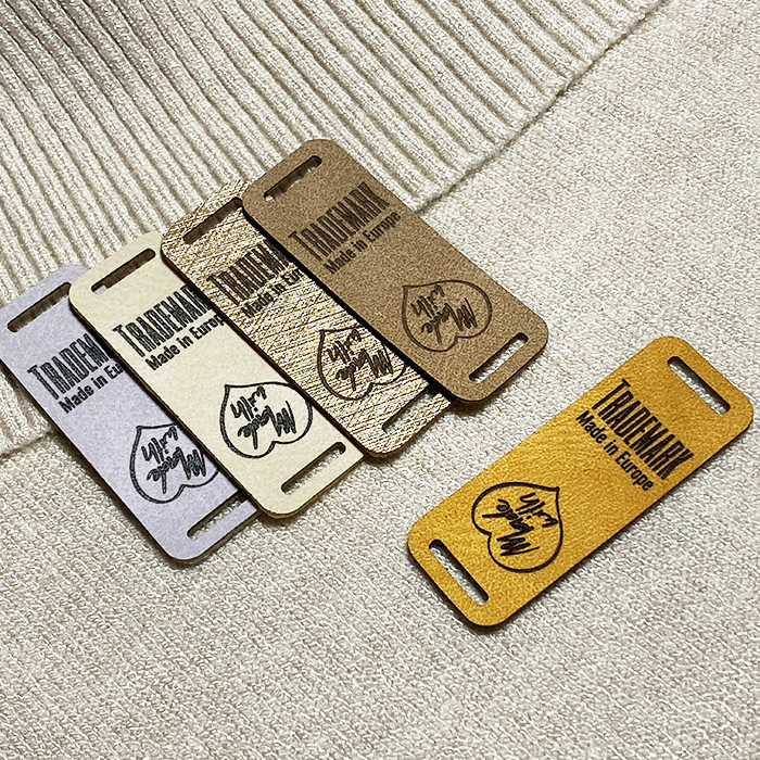 Personalisoitu lappu malli EP-M165 valmistettu synteettisestä nahasta, sopii vaatteisiin, laukkuihin, kenkiin ja muihin vaatekappaleisiin.