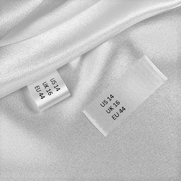 Koko merkintä satiinirullasta, painettu ja leikattu haluttuihin mittoihin vaatteiden tai asusteiden ompeluun. Tämän tyyppiset tekstiililaput ovat valmistettuja digitaalisen painamisen alan kehittyneintä tekniikkaa käyttäen, tekstiilitukialustalla. Laput ovat painettuja erityiselle satiinille lämpösiirtomenetelmällä, painolaatu on vaikuttava ja laput kestävät pesun erittäin hyvin.