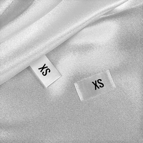 Tekstiili laput, joissa on sen tuotteen koko tai numero, johon ommellaan, valkoisesta satiinista, painettu mustalla tekstillä. Tämän tyyppiset tekstiililaput ovat valmistettuja digitaalisen painamisen alan kehittyneintä tekniikkaa käyttäen, tekstiilitukialustalla. Laput ovat painettuja erityiselle satiinille lämpösiirtomenetelmällä, painolaatu on vaikuttava ja laput kestävät pesun erittäin hyvin.