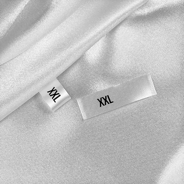 Kokomerkki lapun ompeluun taitettuna vaatteessa, valmistettu hienosta valkoisesta tekstiilimateriaalista. Tämän tyyppiset tekstiililaput ovat valmistettuja digitaalisen painamisen alan kehittyneintä tekniikkaa käyttäen, tekstiilitukialustalla. Laput ovat painettuja erityiselle satiinille lämpösiirtomenetelmällä, painolaatu on vaikuttava ja laput kestävät pesun erittäin hyvin.