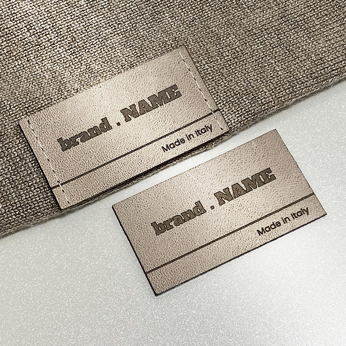 Personalisoitu lappu malli EP-M22 tehty luonnollisesta nahkasta, sopii vaatteisiin, laukkuihin, kenkiin ja muihin vaatekappaleisiin.