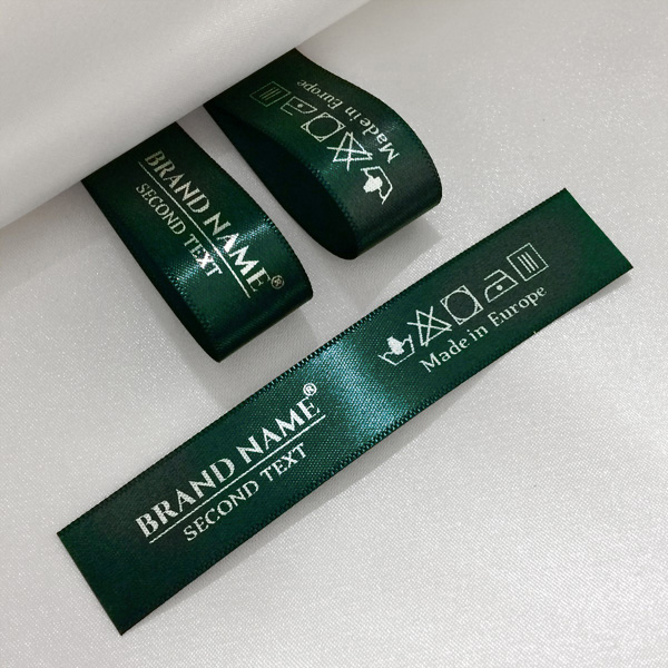 Mukautettu lappu TL-M91 joka on painettu satiinikankaalle ja sopii vaatteille, vaatetustarvikkeille ja muille tekstiilituotteille.