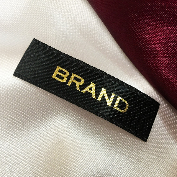 Mukautettu lappu TL-M10 joka on painettu satiinikankaalle ja sopii vaatteille, vaatetustarvikkeille ja muille tekstiilituotteille.