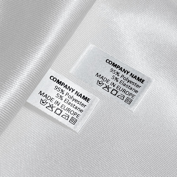 Mukautettu lappu TC-M404 joka on painettu satiinikankaalle ja sopii vaatteille, vaatetustarvikkeille ja muille tekstiilituotteille.