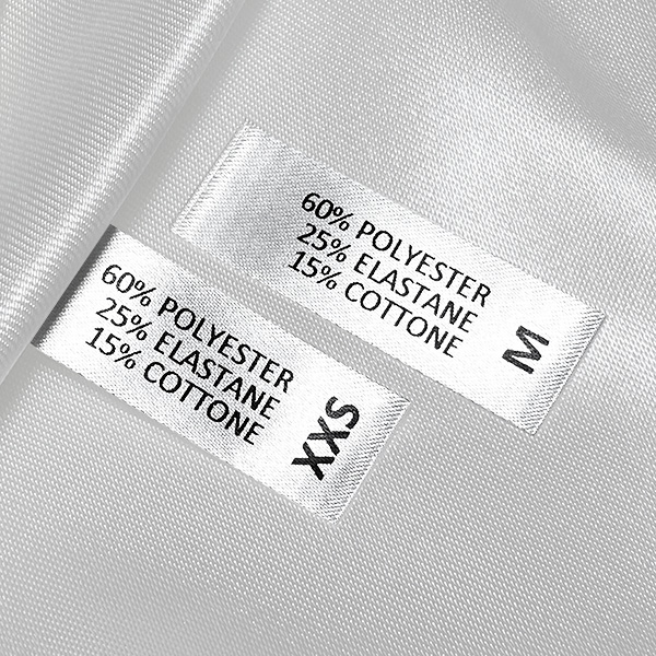 Tekstiili lappu, kanssa koot, valmistettu tilauksesta korkealaatuisesta satiinista, materiaalin koostumuksella, vaatteisiin ommeltava. Tämän tyyppiset tekstiililaput ovat valmistettuja digitaalisen painamisen alan kehittyneintä tekniikkaa käyttäen, tekstiilitukialustalla. Laput ovat painettuja erityiselle satiinille lämpösiirtomenetelmällä, painolaatu on vaikuttava ja laput kestävät pesun erittäin hyvin.