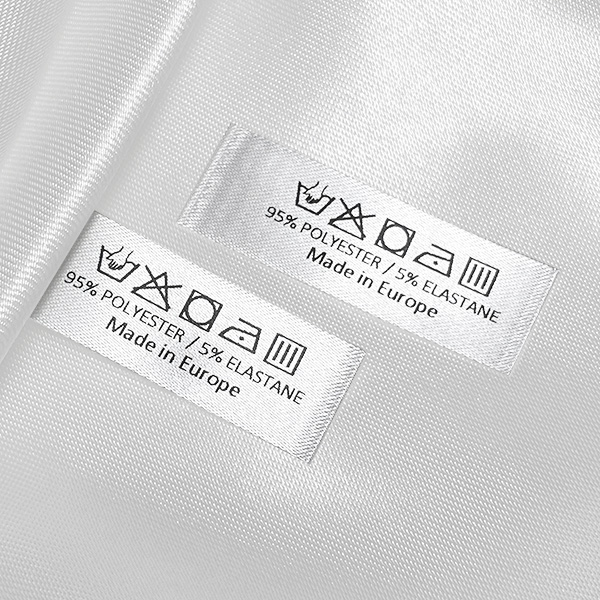 Mukautettu lappu TC-M407 joka on painettu satiinikankaalle ja sopii vaatteille, vaatetustarvikkeille ja muille tekstiilituotteille.