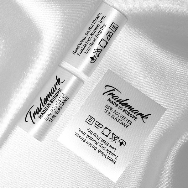Pesulappu TL-M34, joka on räätälöity pesusymboleilla ja tuotenimellä tai logolla ja joka sopii kaikille tekstiilituotteille, erityisesti vaatetustuotteille. Tämän tyyppiset tekstiililaput ovat valmistettuja digitaalisen painamisen alan kehittyneintä tekniikkaa käyttäen, tekstiilitukialustalla. Laput ovat painettuja erityiselle satiinille lämpösiirtomenetelmällä, painolaatu on vaikuttava ja laput kestävät pesun erittäin hyvin.
