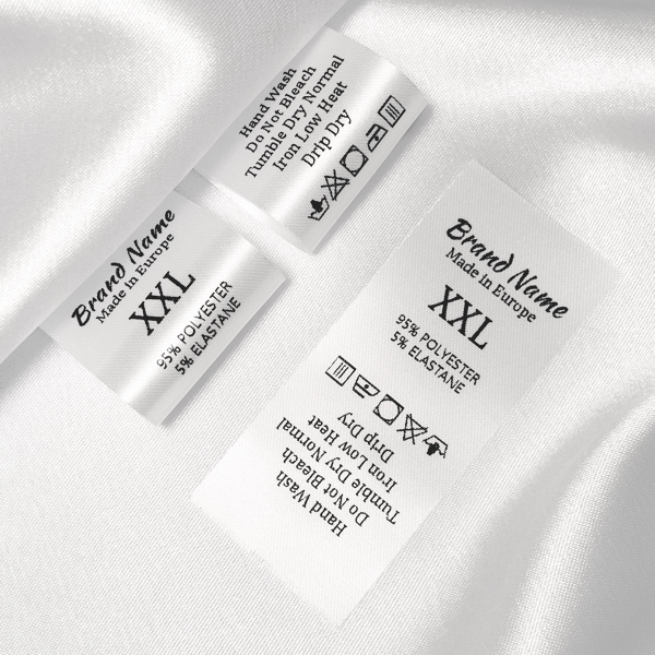 Räätälöidyn kokoinen, hieno valkoinen satiinipesulappu, sopii vaatetustuotteille, erilaisille vaatteille ja tekstiilituotteille. Tämän tyyppiset tekstiililaput ovat valmistettuja digitaalisen painamisen alan kehittyneintä tekniikkaa käyttäen, tekstiilitukialustalla. Laput ovat painettuja erityiselle satiinille lämpösiirtomenetelmällä, painolaatu on vaikuttava ja laput kestävät pesun erittäin hyvin.